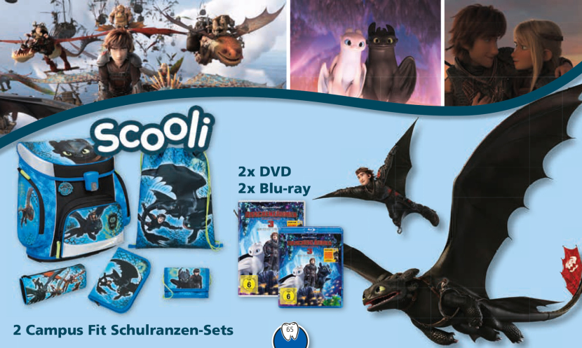 Zum Heimkino-Start von DRACHENZÄHMEN LEICHT GEMACHT 3: DIE GEHEIME WELT am 13. Juni 2019 verlosen wir neben der DVD und der Blu-ray zwei Campus Fit Schulranzen-Sets von Scooli. Das 5-teilige Set besteht aus einem 18-teiligem Schüleretui mit hochwertiger Stabilo-Füllung, einem Turnbeutel, einem Schlamperetui und einer Geldbörse. Sein geringes Gewicht und sein ergonomisches Rückenpolster sorgen